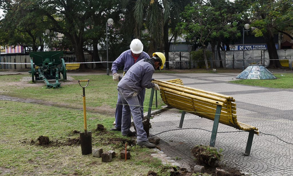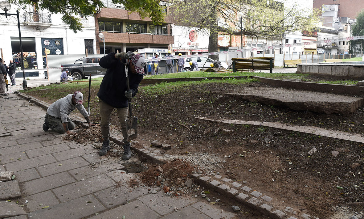 Mendiondo, por su parte, contó que “las tareas comenzaron con el cierre de la parte central de la plaza, con el fin de trabajar en el interior primero y luego en la parte perimetral”. En esa línea, enumeró que “se están recuperando los adoquines, algunas especies arbóreas y los bancos que luego serán restaurados”.