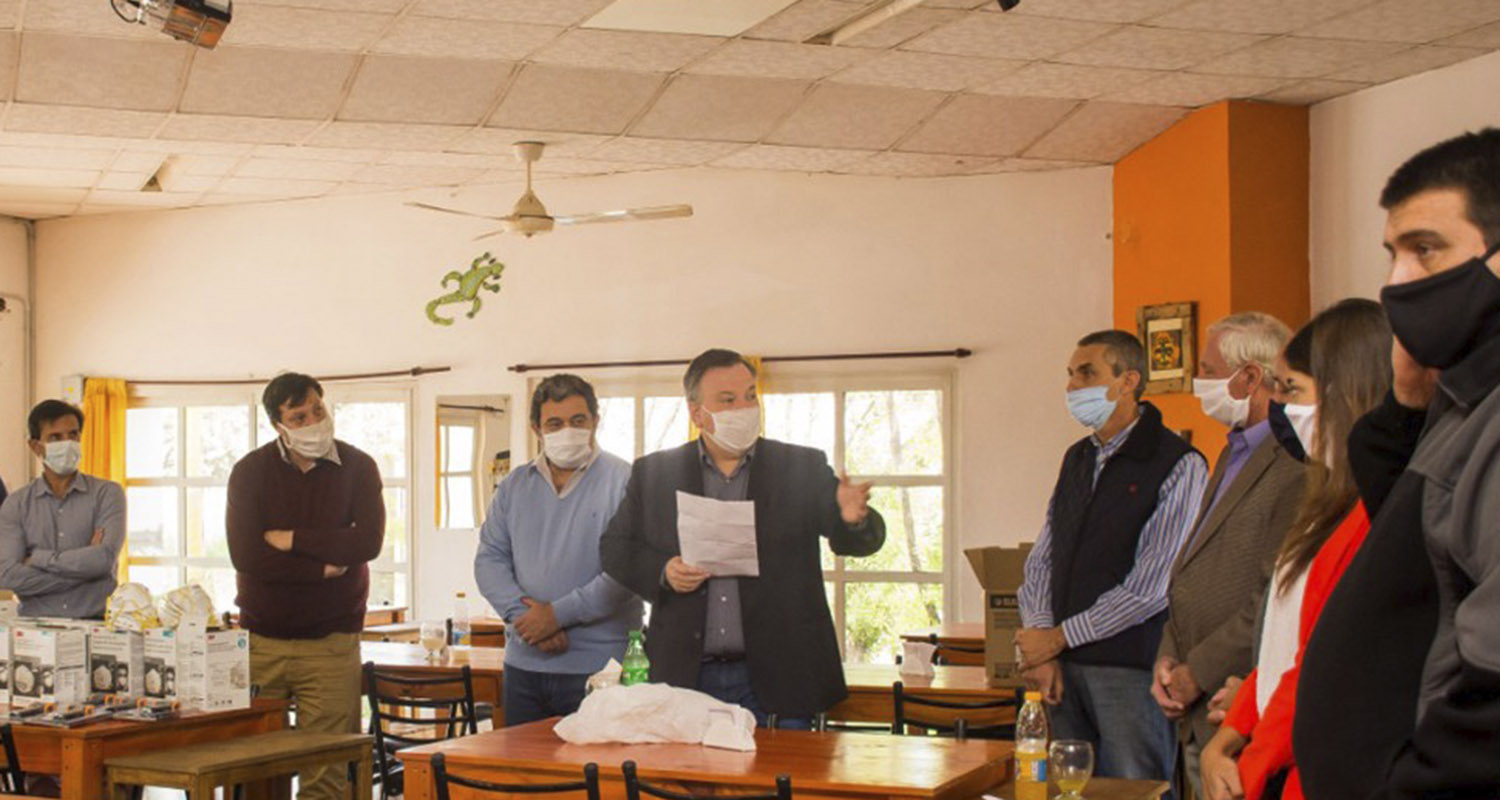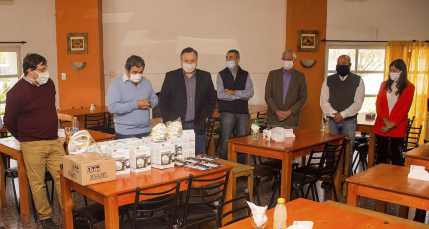El presidente comunal de Arrufó, Cristian Piumatti, recibió al senador departamental, Felipe Michlig; el diputado, Marcelo Omar González; al subsecretario de Salud de la provincia, Guillermo Rajmil y al director del SIES 107, Eduardo Wagner; entre otras. Durante el encuentro se recibieron barbijos 3M destinados al SAMCo local, en el marco de la lucha contra la pandemia del Covid-19.