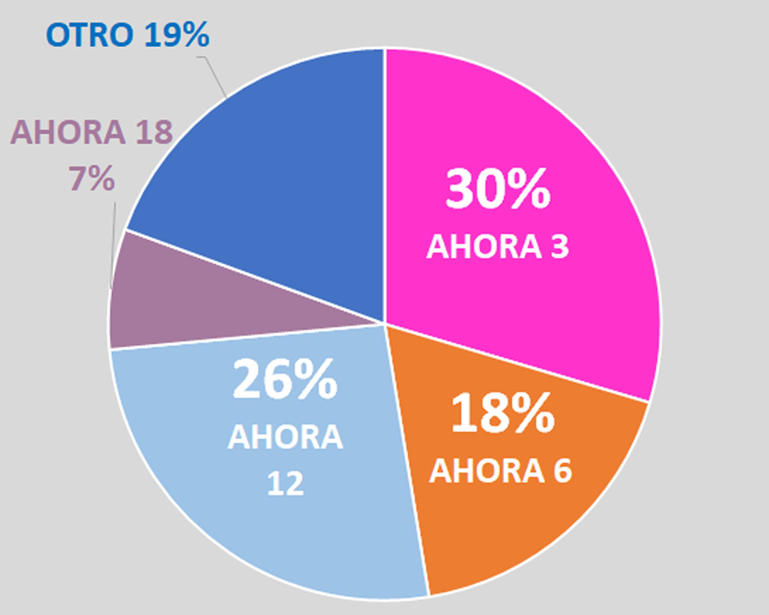 Por su parte, entre los planes de Financiamiento Ahora disponibles los de mayor proyección de uso para las compras en el Día de la Madre son que el 30% de los consumidores optará por las Planes Ahora 3 y 18% el Ahora 6 para gastos menores a $5.000 y 26% Ahora 12 y otro 7% el Ahora 18 para gastos superiores a $5.000 y $10.000.
