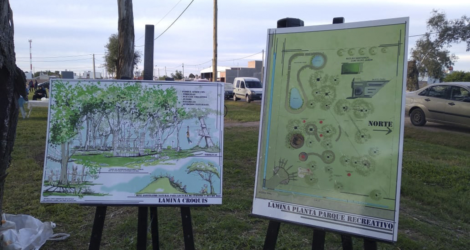 El presidente comunal y el arquitecto Federico Franco presentaron unas láminas donde se aprecia la sectorización final del parque recreativo y las obras proyectadas en el corto plazo.