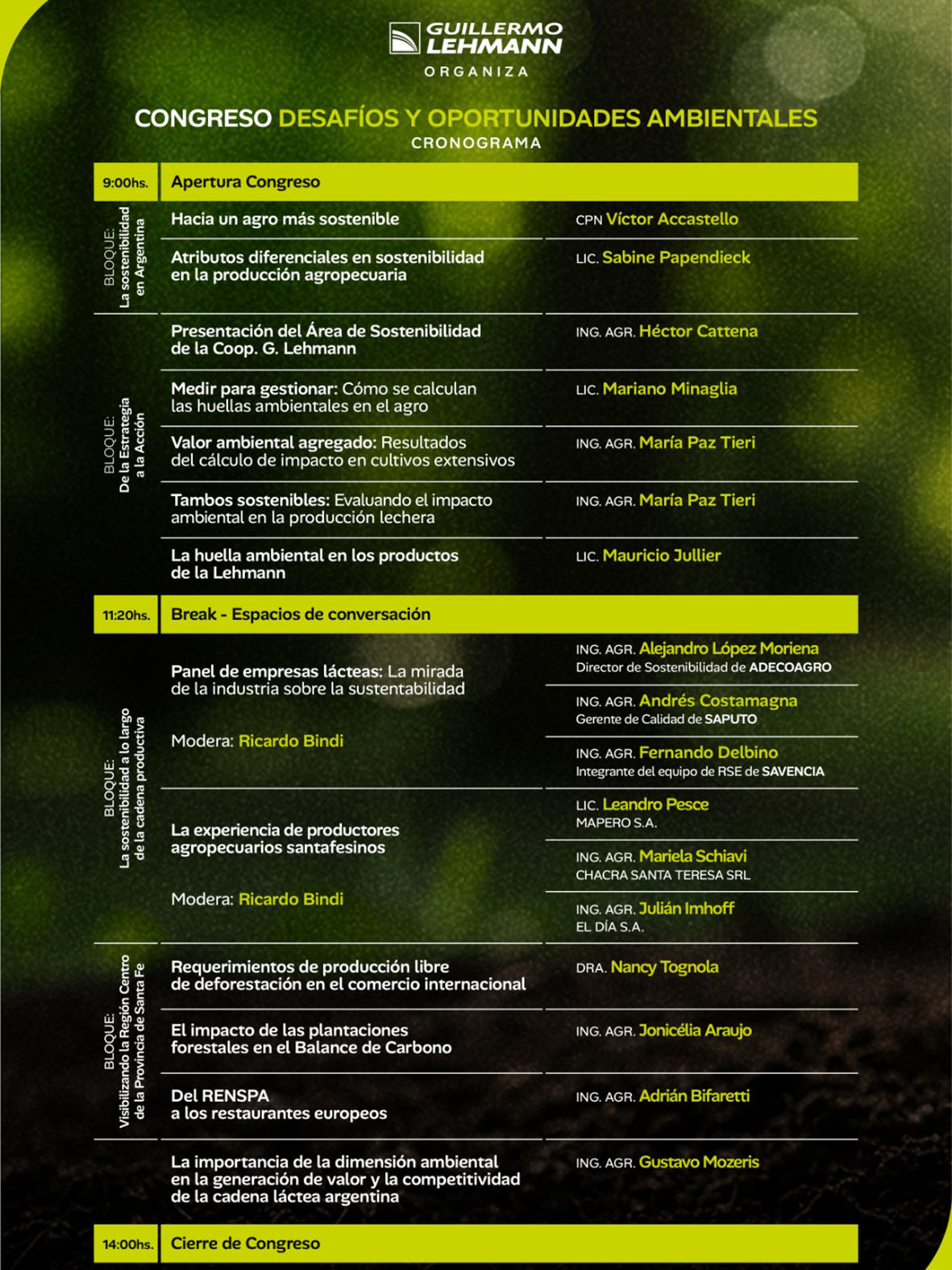 El congreso propone un enfoque integral de la sustentabilidad, articulando ciencia, producción y gestión cooperativa. Su programa está basado en los resultados de las mediciones de huellas ambientales en 50 establecimientos tamberos del centro santafesino -una experiencia pionera en el país-, complementada con casos prácticos y experiencias replicables que inspiren nuevas acciones. “Queremos generar un espacio de encuentro para autoridades, productores, asesores, investigadores y estudiantes, donde podamos compartir conocimiento, herramientas y experiencias para construir un futuro productivo más responsable y competitivo”, señalaron desde la organización.