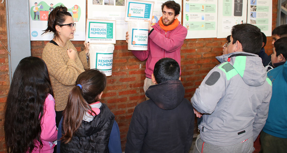 Se brindaron charlas de concienciación a vecinos y vecinas de las vecinales Scarafía quienes participan activamente del proyecto de extensión “Reciclado de Residuos Plásticos: la FIQ promoviendo cambios de hábitos y transformando vidas”; se realizó la charla virtual “Sistemas alimentarios e impacto ambiental. Hacia dónde vamos”, en el marco del ciclo “Experimentar conCiencia” de la FIQ-UNL. y en el marco de las acciones de cultura científica, docentes de FIQ y alumnos de 7° grado de la Escuela Primaria UNL trabajaron en dos jornadas sobre “La salud de los suelos de nuestra provincia”. La agenda incluyó además acciones en las ciudades de Rafaela, Reconquista y San Javier a partir del trabajo articulado desde los centros universitarios de la UNL. Se realizó la jornada “Producción de alimentos y sostenibilidad ambiental: ¿podemos sumar sin restar?” en el Centro Comercial e Industrial de Rafaela y la Región y charla- debate “Ambiente, ODS y otra ronda” en la ciudad de Reconquista, mientras que en San Javier tuvo lugar una jornada abierta con los vecinos en el marco del proyecto de extensión “Estrategias de valorización de residuos plásticos en la ciudad de San Javier”.
