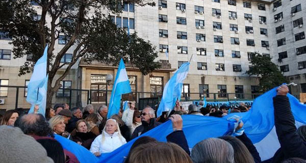 Con la sede judicial cerrada por el feriado del Día de la Bandera, los manifestantes pidieron frente a los tribunales por “una justicia justa”, coincidiendo el comienzo del acto con el lanzamiento del Frente Ciudadano de Cristina Kirchner en el estadio de Arsenal de Sarandí.