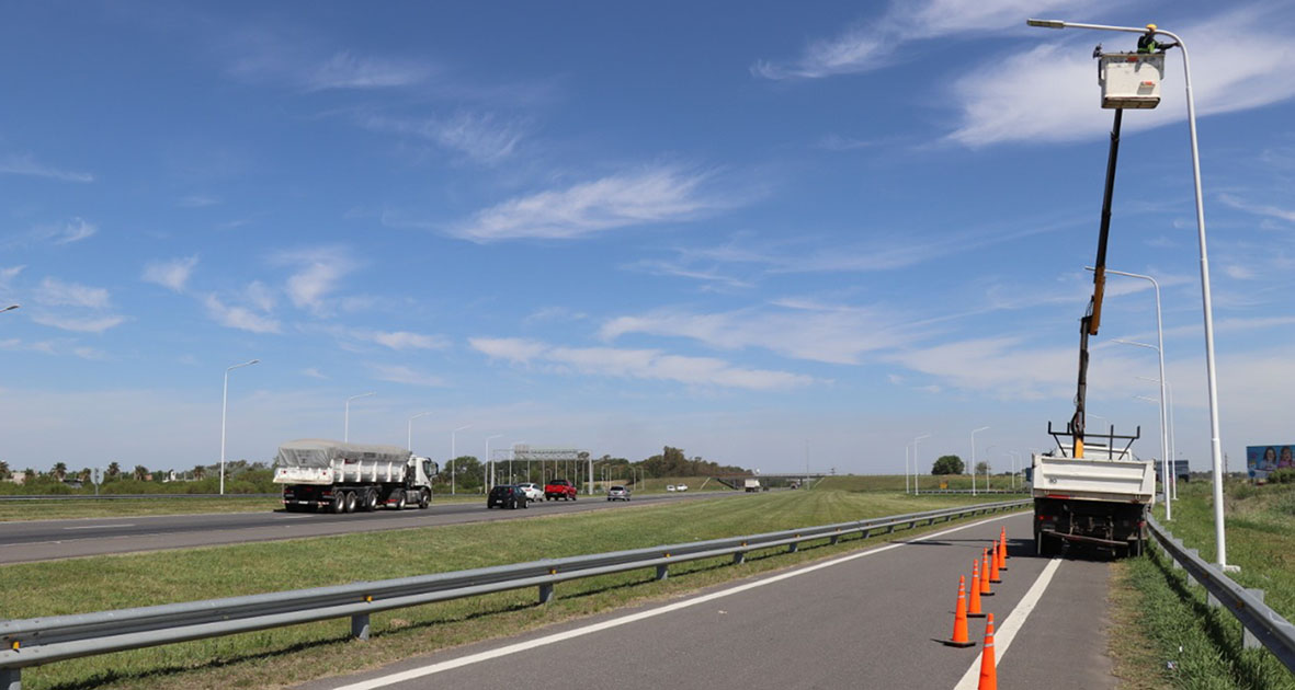 Se ejecutan obras de iluminación con tecnología LED en la autopista Santa Fe-Rosario
